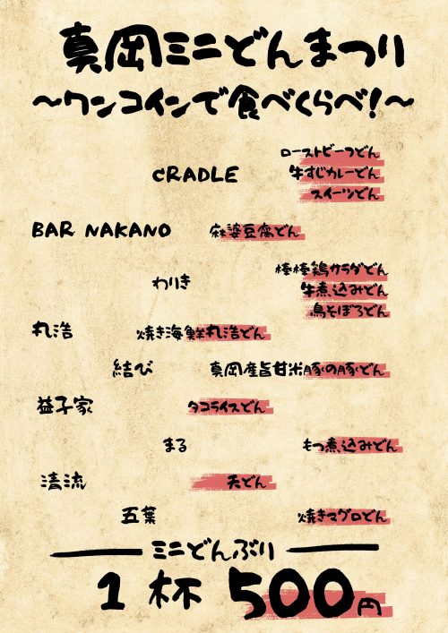 真岡市で注目の飲食店9店舗が一堂に会し、一杯500円のワンコインで、ご提供!!!